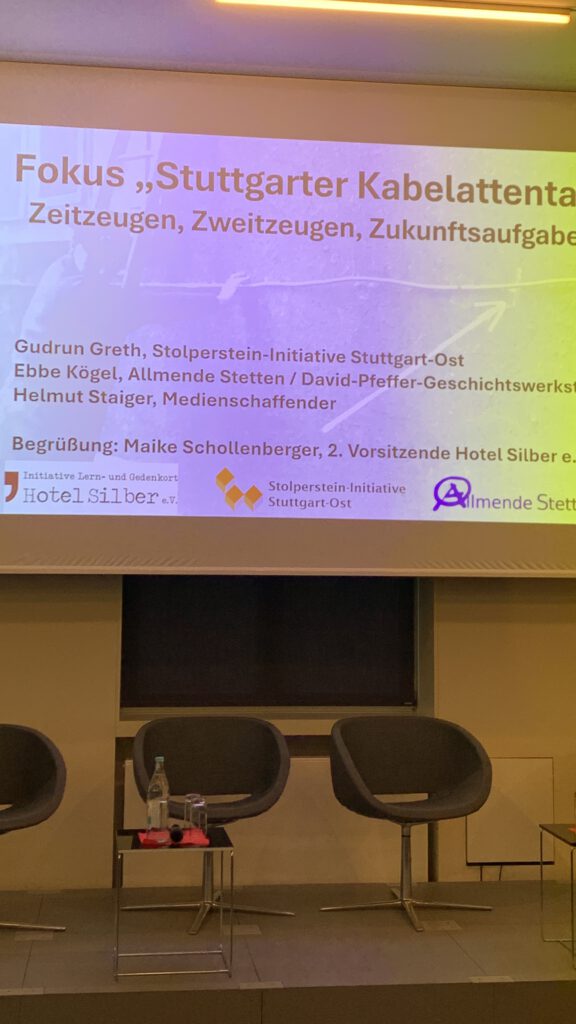 Veranstalter:innen: Initiative Lern- und Gedenkort Hotel-Silber e.V., StolperKunst, Stolperstein-Initiative Stuttgart-Ost, Allmende Stetten, David-Pfeffer-Geschichtswerkstatt in Zusammenarbeit mit der Koordinierungsstelle Erinnerungskultur Stadt Stuttgart
