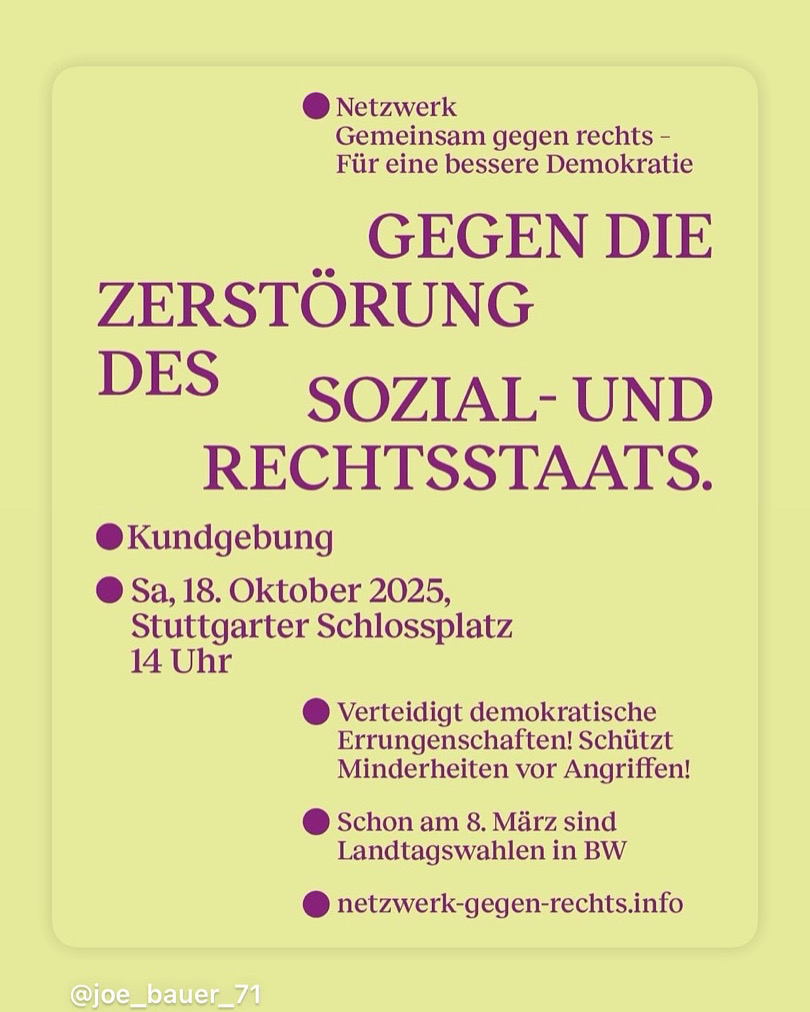 Samstag, 18. Oktober 2025, Stuttgarter Schlossplatz, Beginn 14 Uhr.