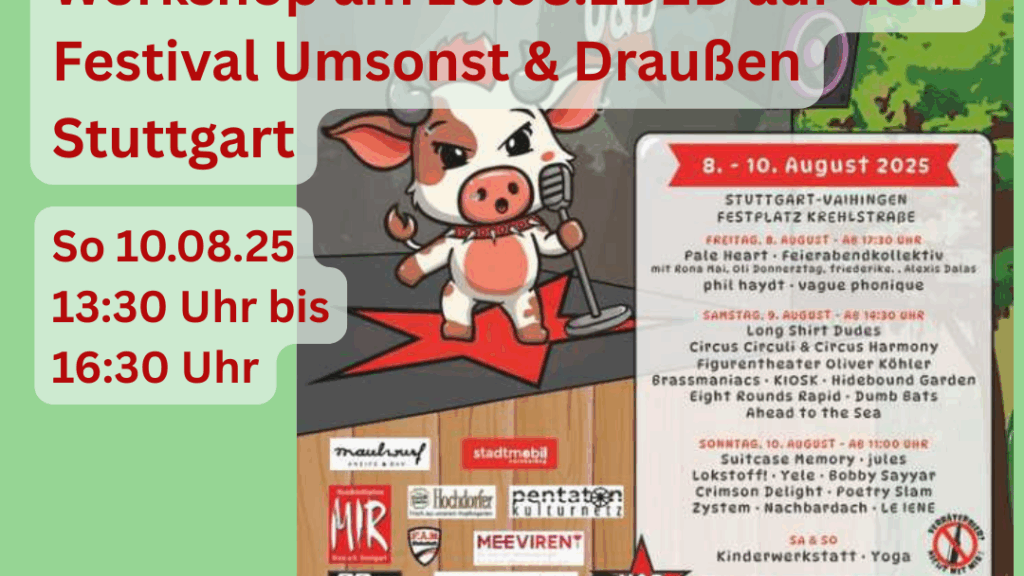 10. August: Workshop Zivilcourage gegen Hass und Hetze auf dem Festival Umsonst und Draußen