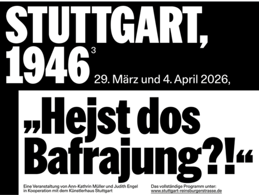 Mehr Info: https://stuttgart-reinsburgerstrasse.de/1946-hejst-dos-bafrajung/#inhalt