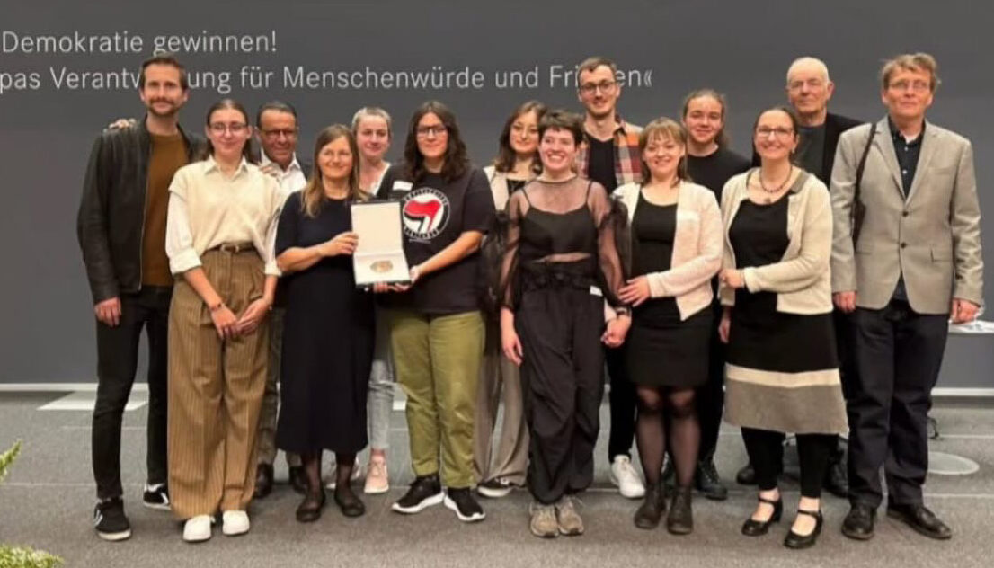 Die Medaille wurde vom Team des Campo della Pace zusammen mit Vertreter:innen der drei veranstaltenden Organisationen entgegengenommen.
