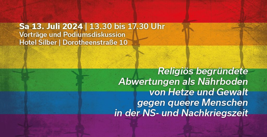 13. Juli 2024: Öffentliche Fachtagung „Religiös begründete Abwertungen als Nährboden von Hetze und Gewalt gegen queere Menschen in der NS- und Nachkriegszeit“