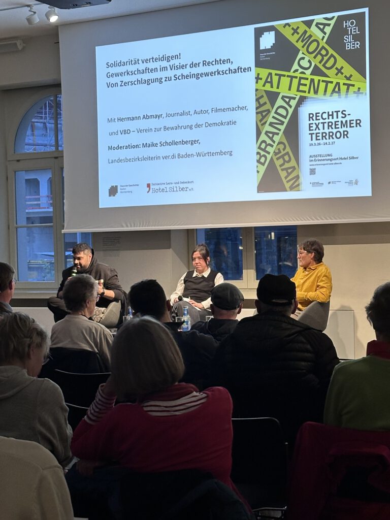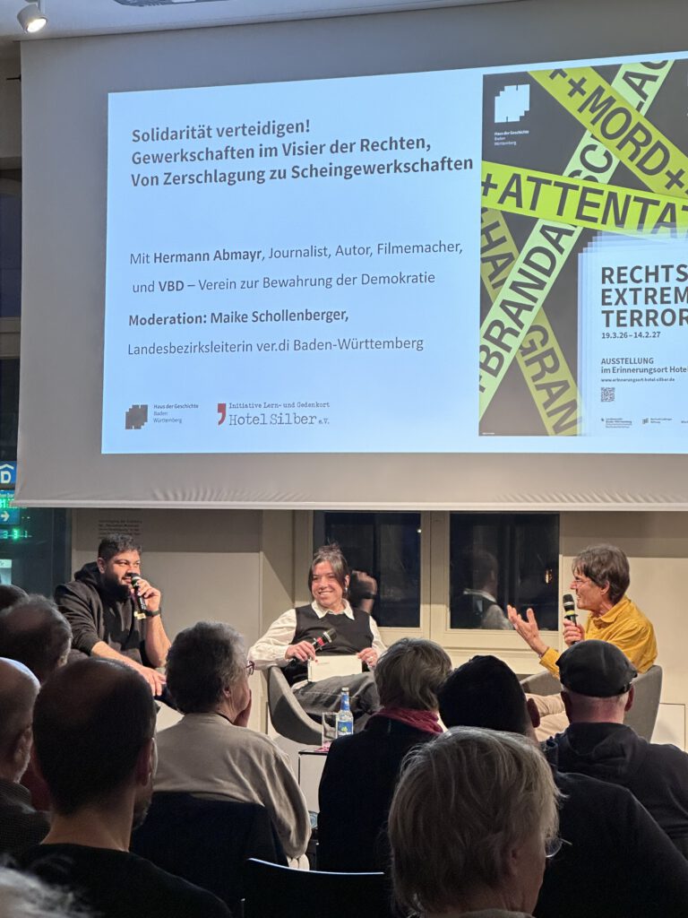 Mit Beiträgen von Hermann Abmayr (Journalist, Autor, Filmemacher), Maike Schollenberger (Landesbezirksleiterin ver.di Baden-Württemberg) und dem VBD – Verein zur Bewahrung der Demokratie.