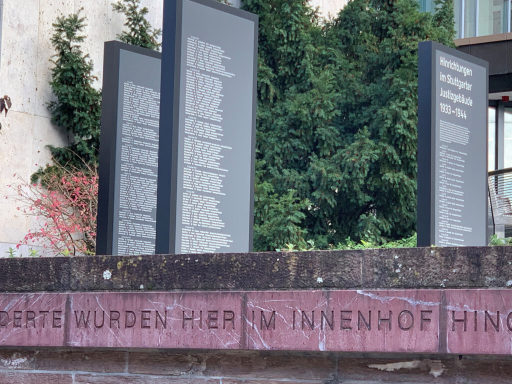 Ort: Gedenk-Stelen vor dem Gerichtsgebäude