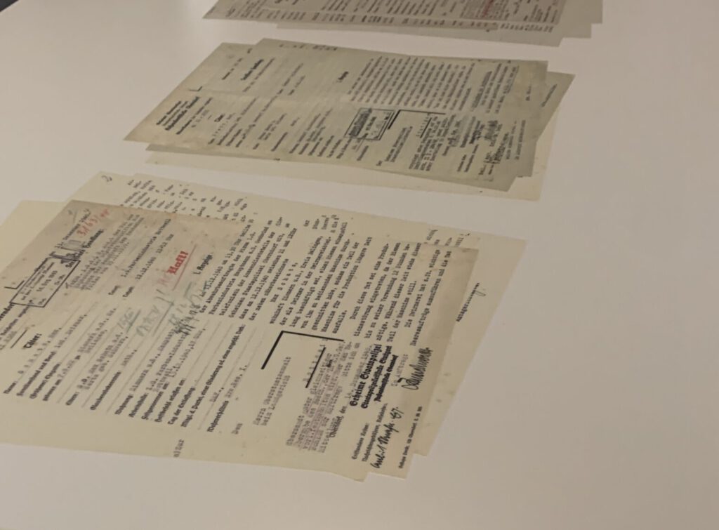 Die Gestapo war weder allgegenwärtig, noch allwissend. Wie erfuhren die Beamten dann, dass Anton Hummler ausländische Radiosender hörte, Karl Erath Hermann Göring einen „Seckel“ genannt und Theresa F. angeblich eine Beziehung zu einem Zwangsarbeiter gehabt hatte? Die Führung geht der Frage nach, welche Rolle Anzeigen aus der Bevölkerung bei der Überwachung der Gesellschaft spielten.